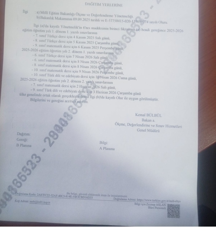ÜLKE GENELİ ORTAK SINAV TARİHLERİ BELLİ OLDU